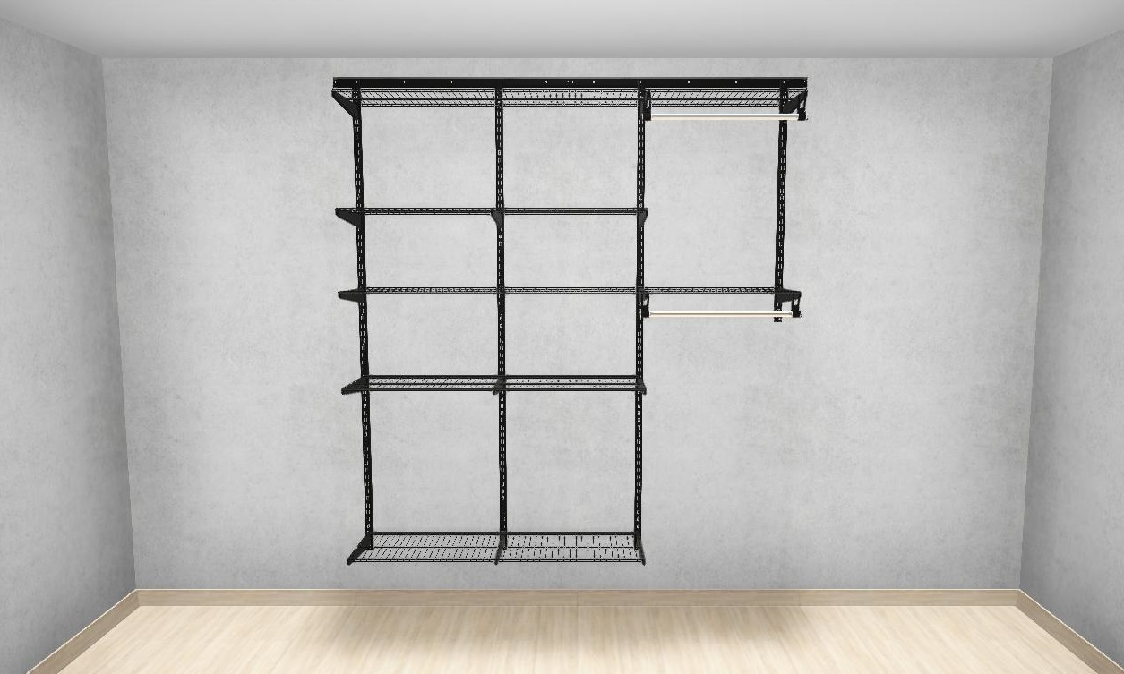 Базовый комплект гардеробной системы GS - это готовое решение для квартиры, дачи, гаража, обеспечивающее удобное хранение вещей. Система собирается в 6 разных конфигурациях, что позволяет подстраивать ее под размеры помещения и ориентироваться на личные пожелания по расположению отдельных элементов. В комплект входят несущие рельсы и навесные направляющие, полки, штанги, аксессуары, крепежные элементы. Можно докупить множество дополнительных компонентов для гардеробной системы.