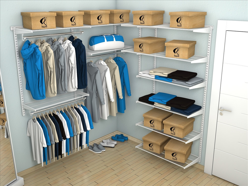 В комплект входят несущие рельсы и навесные направляющие, полки, штанги, аксессуары, крепежные элементы. Можно докупить множество дополнительных компонентов для гардеробной системы.