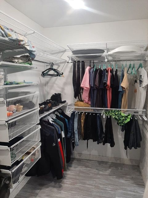 В комплект входят несущие рельсы и навесные направляющие, полки, штанги, аксессуары, крепежные элементы. Можно докупить множество дополнительных компонентов для гардеробной системы.