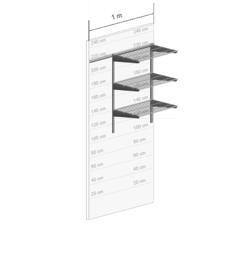 Базовый комплект гардеробной системы GS - это готовое решение для квартиры, дачи, гаража, обеспечивающее удобное хранение вещей. Система собирается в 6 разных конфигурациях, что позволяет подстраивать ее под размеры помещения и ориентироваться на личные пожелания по расположению отдельных элементов. В комплект входят несущие рельсы и навесные направляющие, полки, штанги, аксессуары, крепежные элементы. Можно докупить множество дополнительных компонентов для гардеробной системы.