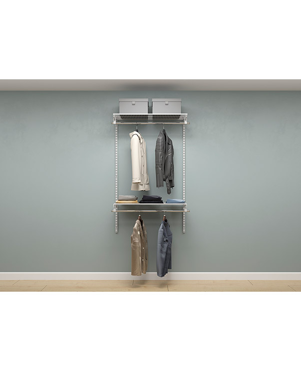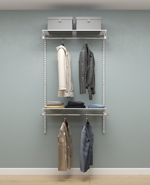 В комплект входят несущие рельсы и навесные направляющие, полки, штанги, аксессуары, крепежные элементы. Можно докупить множество дополнительных компонентов для гардеробной системы.