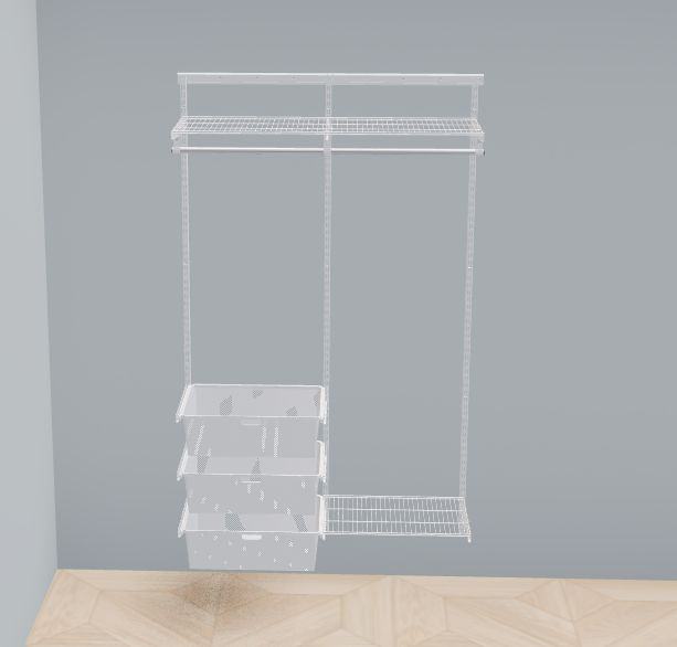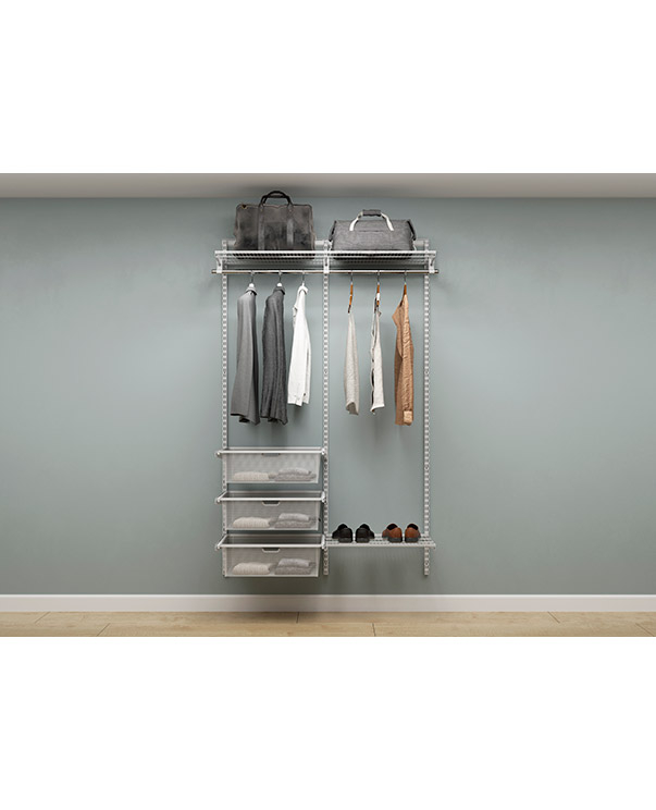 В комплект входят несущие рельсы и навесные направляющие, полки, штанги, аксессуары, крепежные элементы. Можно докупить множество дополнительных компонентов для гардеробной системы.