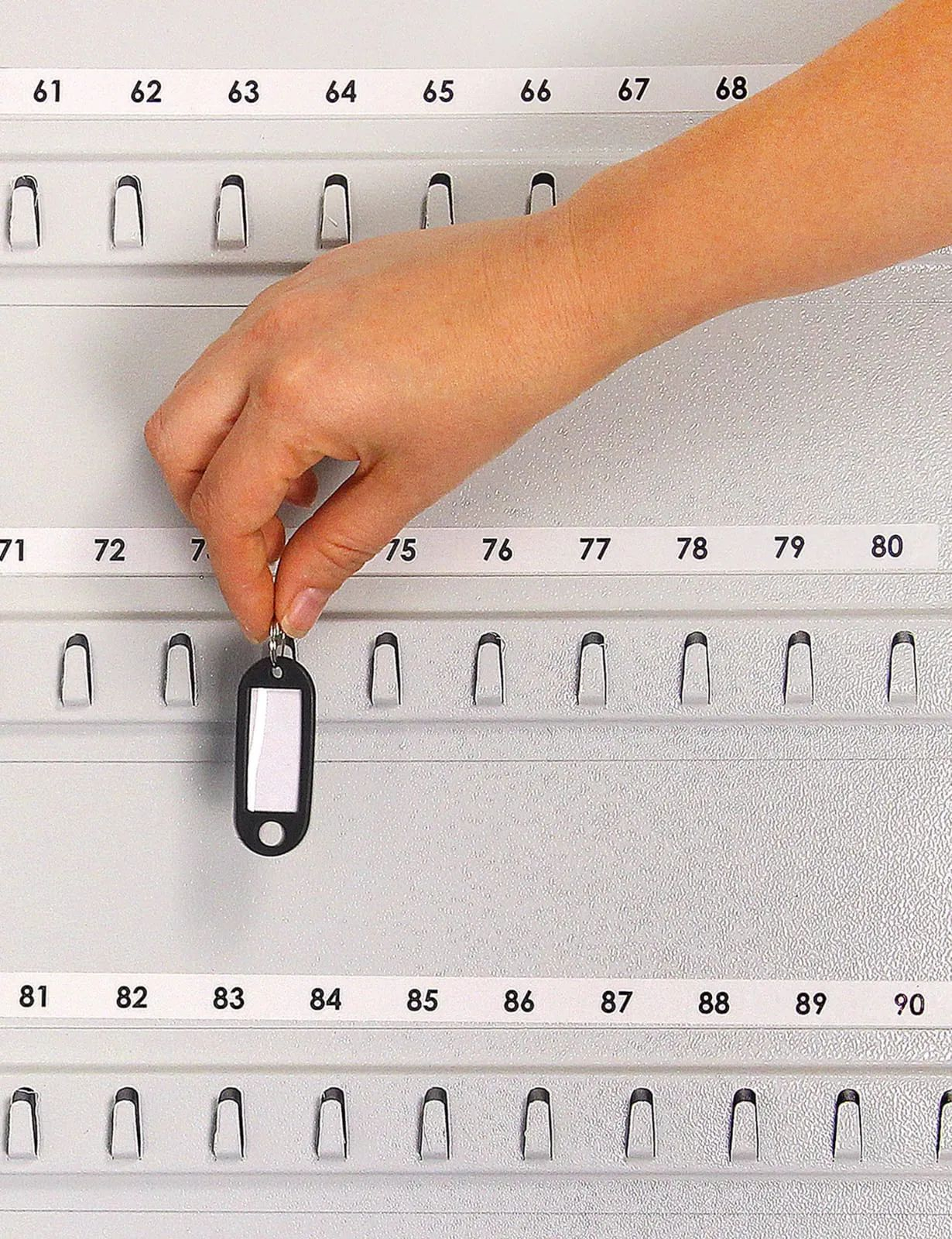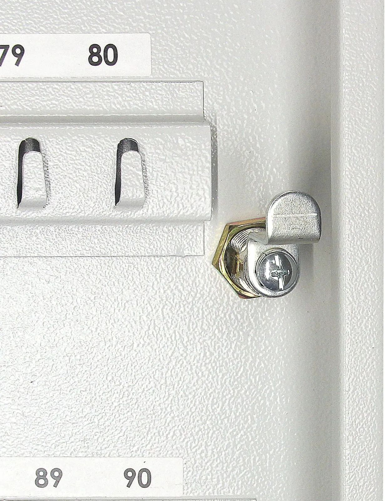 На задней стенке корпуса расположены отверстия для крепления. В дверь установлен замок типа «Cam-Lock». По желанию заказчика ключница может комплектоваться брелоками. Подходит для домашнего использования, офисов, гостиниц и прочих учреждений, где необходимо хранить большое количество ключей.