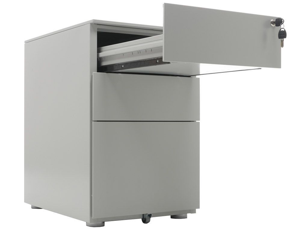 - Опции: пластиковые лотки и металлический ящик для канцелярских принадлежностей и других предметов. Возможность комбинирования цветов: корпус + фасады ящиков и крышка (конструкция тумбы металл+металл). Или отделка фасадов ящиков и крыши тумбы ламинированной плитой ЛДСП (конструкция тумбы металл+ЛДСП)