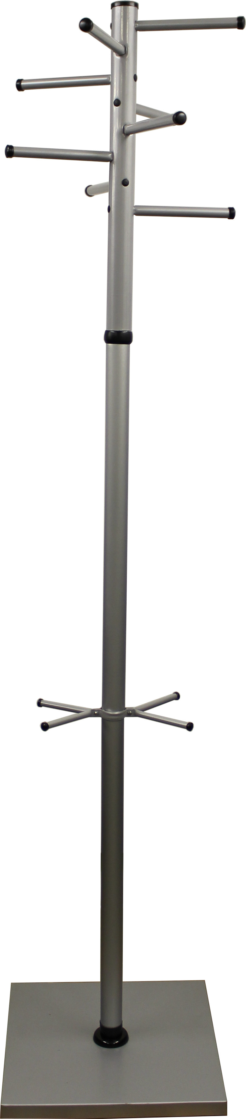 Вешалка напольная Мажор 4-З выполнена из оцинкованной стали с полимерным покрытием, утяжеленной квадратное основание.