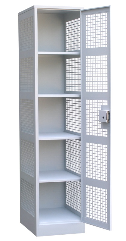 На боковых стенках и дверке шкафа имеется перфорация, выполненная в виде квадратных отверстий со стороной квадрата 17мм, с шагом отверстий 22мм.