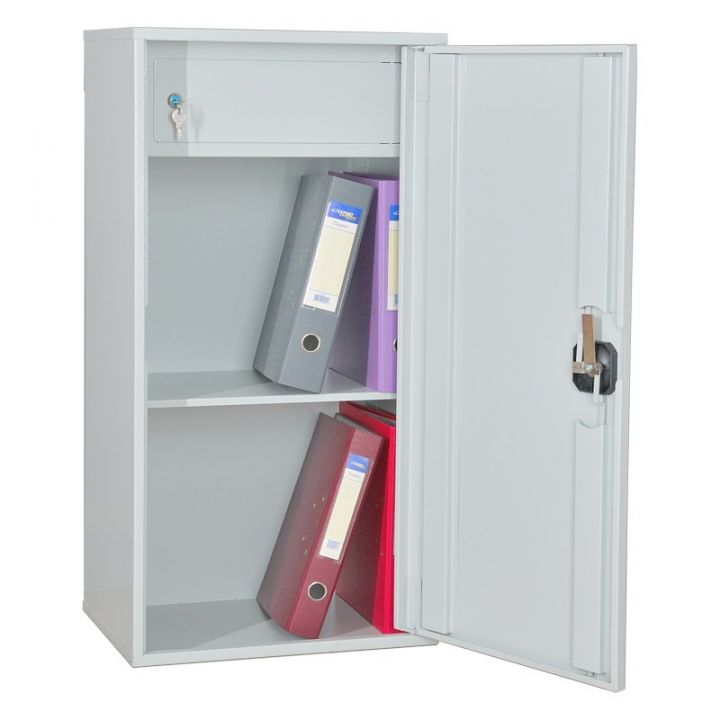Шкаф офисный односекционный ШМ-90 ТМ предназначен для хранения бумажных документов. Корпус и дверь шкафа толщиной 1 мм. Шкаф для документов металлический офисный ШМ-90 ТМ оснащен съемной полкой, с изменяемой высотой постановки и Трейзером. В двери установлен ключевой почтовый тяговый замок «ЗП-053» г. Москва или аналогичный замок другого производителя. Шкаф изготовлен по новой, уникальной, технологии нашей фирмы на высокоточном оборудовании. Заготовка комплектующих для данного шкафа производится методом лазерной резки, что позволяет добиться высокого качества и эстетичного вида изделия. Скругленные углы дверей повысили безопасность изделия снизив количество травм возникающих при контакте с угловой поверхностью двери. Сварка шкафа производится «от лица», позволяя скрыть все места сварки и перенести их на заднюю стенку изделия, что так же улучшает общее впечатление от изделия.