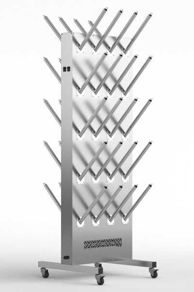Cушильное устройство предназначено для просушки 10 пар обуви и перчаток. Данные сушилки используются внутри помещений на предприятиях пищевой, нефтегазовой и других отраслях промышленности и животноводства. Так же находят применение в строительных, транспортных, судоходных компаниях, образовательных учреждениях. Встроенная УФ-лампа позволяет устранить неприятные запахи, оказывает дезинфицирующее действие. Сборка происходит путем прикручивания винтами воздуховодов и ножек к сушильному модулю.Подключается к бытовой розетке.