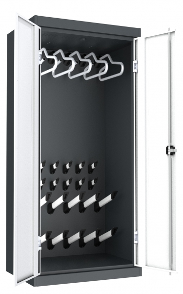 Шкаф для быстрой и эффективной сушки горнолыжного снаряжения в одной ячейке: 5 пар ботинок, 5 пар перчаток и 5 комплектов верхней одежды. Шкаф оснащён нагревательными элементами и вентиляторами, которые обеспечивают циркуляцию тёплого воздуха внутри камеры. Это позволяет быстро и равномерно высушить мокрое снаряжение, предотвращая его порчу и появление неприятного запаха.