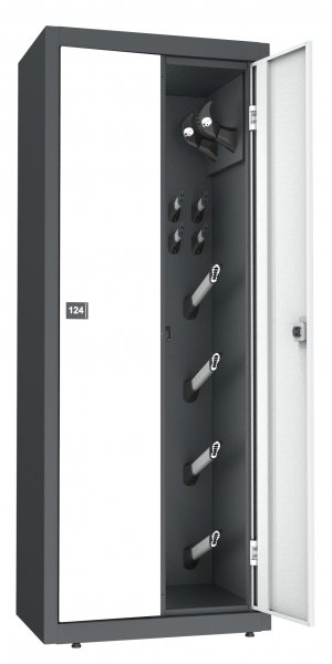 Шкаф для быстрой и эффективной сушки горнолыжного снаряжения в одной ячейке: 2 пар ботинок, 2 пар перчаток, 2 шлемов. Шкаф оснащён нагревательными элементами и вентилятором, который обеспечивают циркуляцию тёплого воздуха внутри камеры. Это позволяет быстро и равномерно высушить мокрое снаряжение, предотвращая его порчу и появление неприятного запаха.