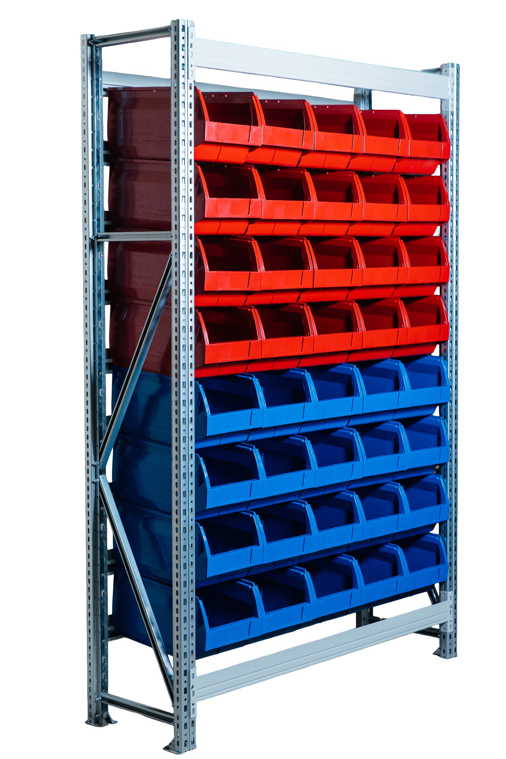 Стеллажи предназначены для хранения пластиковых ящиков системы 5000.