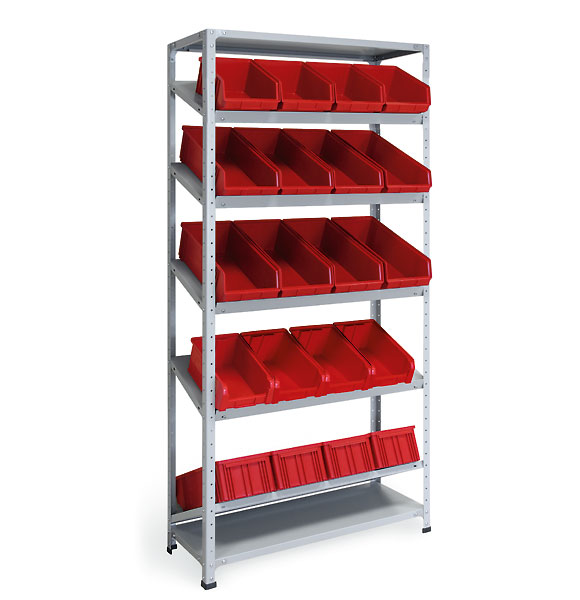 Пластиковые ящики в стандартную комплектацию не входят и приобретаются отдельно. Загрузка ящиков может производиться как с лицевой, так и с обратной стороны стеллажа.