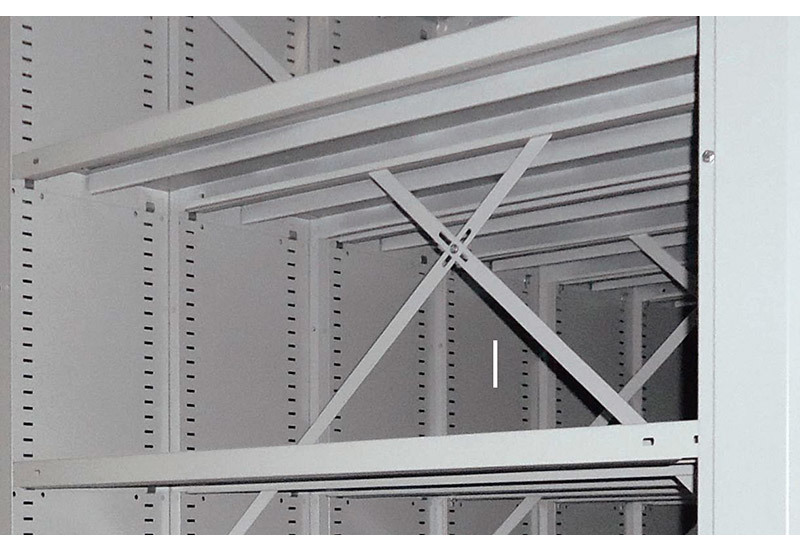 - каждая секция стеллажа оснащена стопором с замком для одновременной блокировки доступа к архиву и антиопрокидывающим устройством;