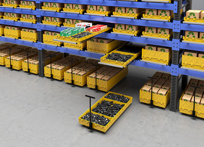 Модуль встраиваемый в стандартный евростеллаж. Распределенная нагрузка до 25 кг. Размещение до 8 наименований товара изолированно друг от друга. Глубина (выдвинутая) - 1910 мм