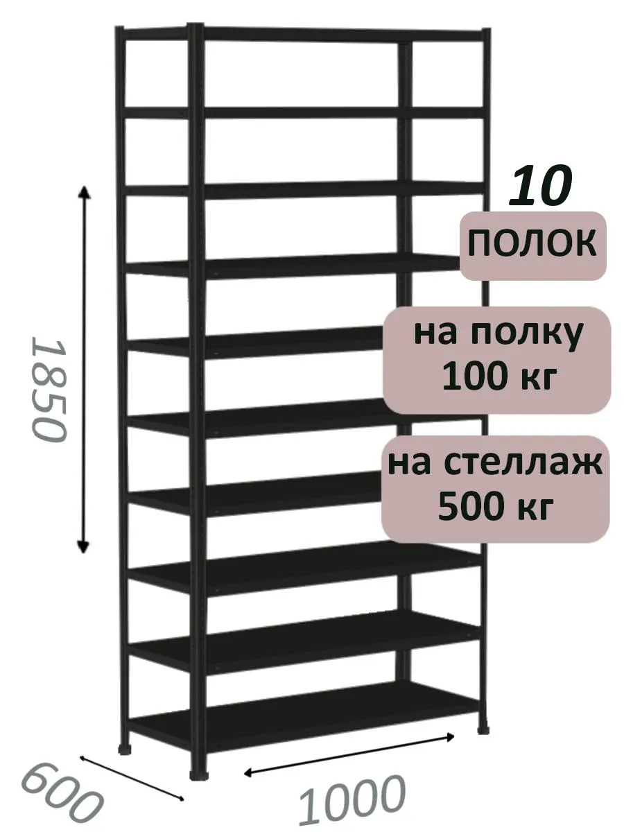 Стеллаж MS Standart 185х100х60, 10 полок, чёрный