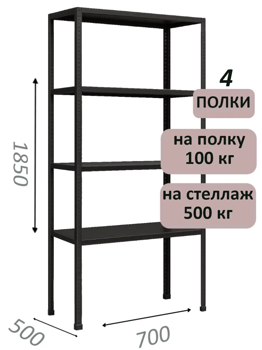 Стеллаж MS Standart 185х70х50, 4 полки, чёрный