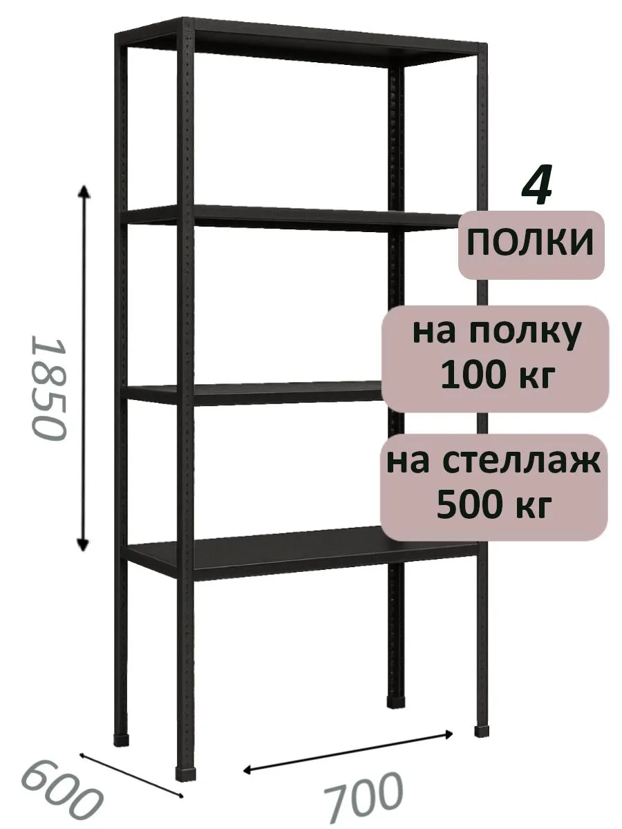 Стеллаж MS Standart 185х70х60, 4 полки, чёрный