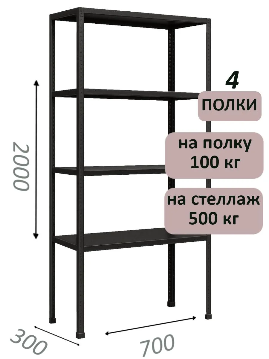 Стеллаж MS Standart 200х70х30, 4 полки, чёрный
