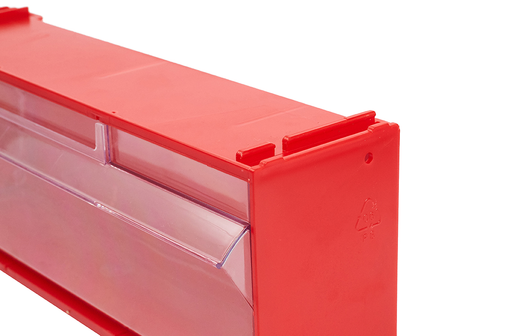 Короб откидной F-300-1, 300х97х112мм, красный, прозрачный