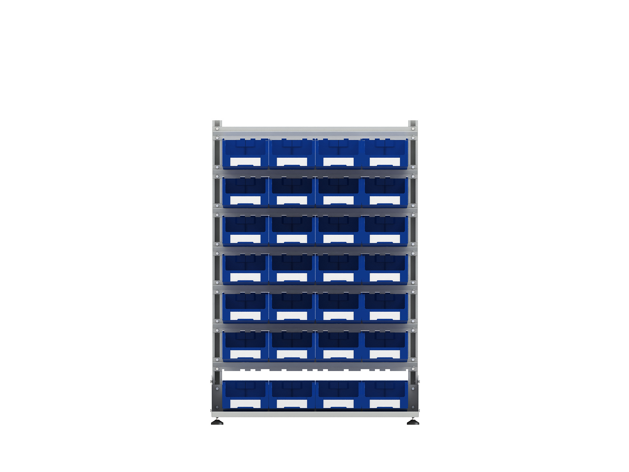 - Стеллажи могут комплектоваться лотками двух цветов: синий и красный, а также могут отгружаться и без лотков
