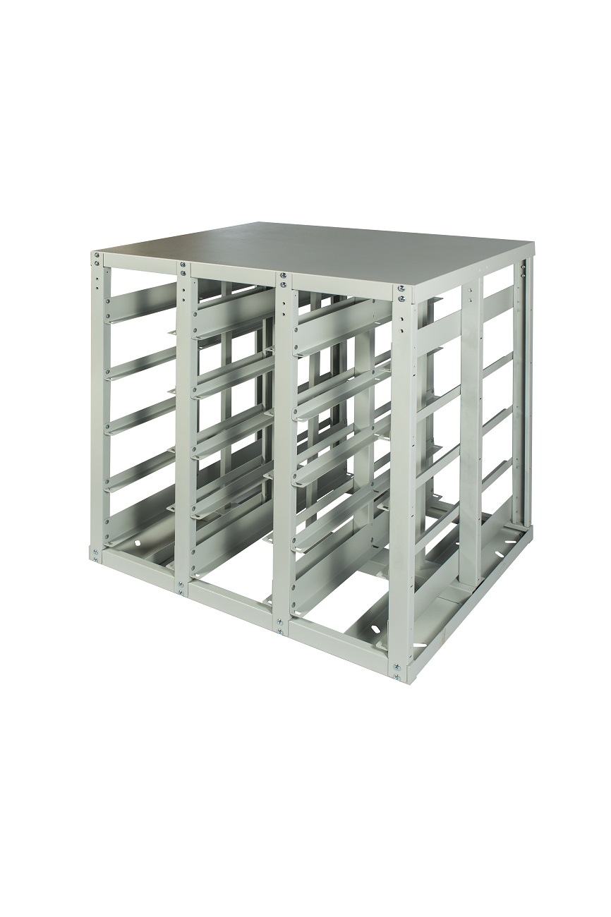 Стеллаж с направляющими V3-30 стационарный, двусторонний, 30 ячеек c ящиками