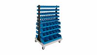 Каркас стойки подкатной СПМ выполнен из П-образного профиля, покрытого износостойкой порошковой краской светло-серого цвета RAL7035. Высота полок регулируется. Распределенная нагрузка на стойку до 80 кг. Конструкция подкатной стойки позволяет оснастить ее дополнительными полками и электропанелью.