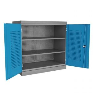 Антресоли изготовлена из листовой стали и обеспечивает надежное запирание дверей ригельной системой. Шкаф данной модели может комплектоваться либо полками Technic(1) и ящиками Technic(1) – по всей ширине шкафа, при этом максимальное количество полок и ящиков по высоте - 12 штук. При установке перегородки, шкаф делится на две части и может комплектоваться полками Technic(2) и ящиками Technic(2), при этом максимальное количество полок и ящиков по высоте - 12 штук в два ряда.