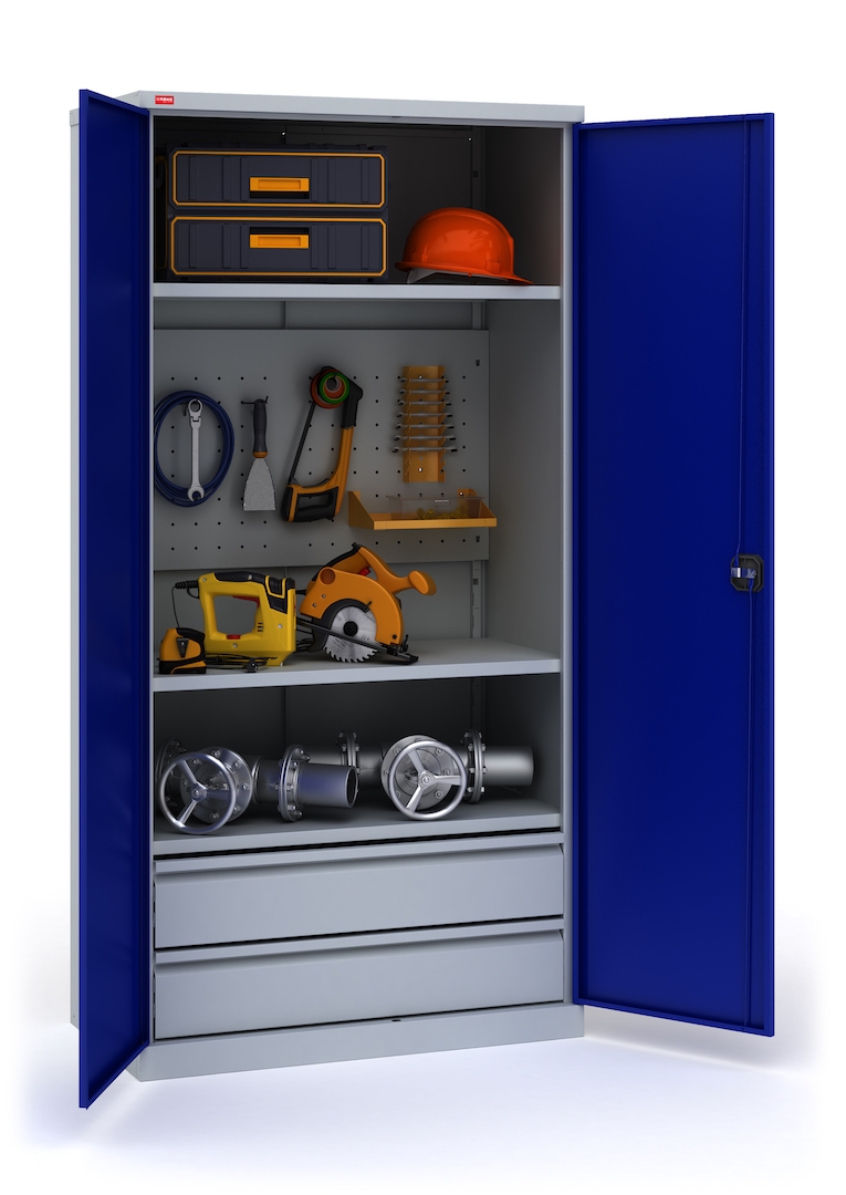 Односекционный инструментальный шкаф. Вариант возможной комплектации (инструменты на фото в комплектацию не входят)