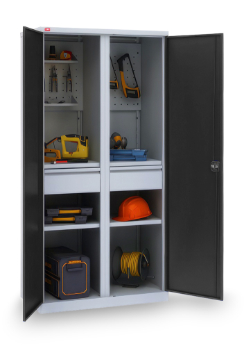Двухсекционный инструментальный шкаф. Вариант возможной комплектации (инструменты на фото в комплектацию не входят)