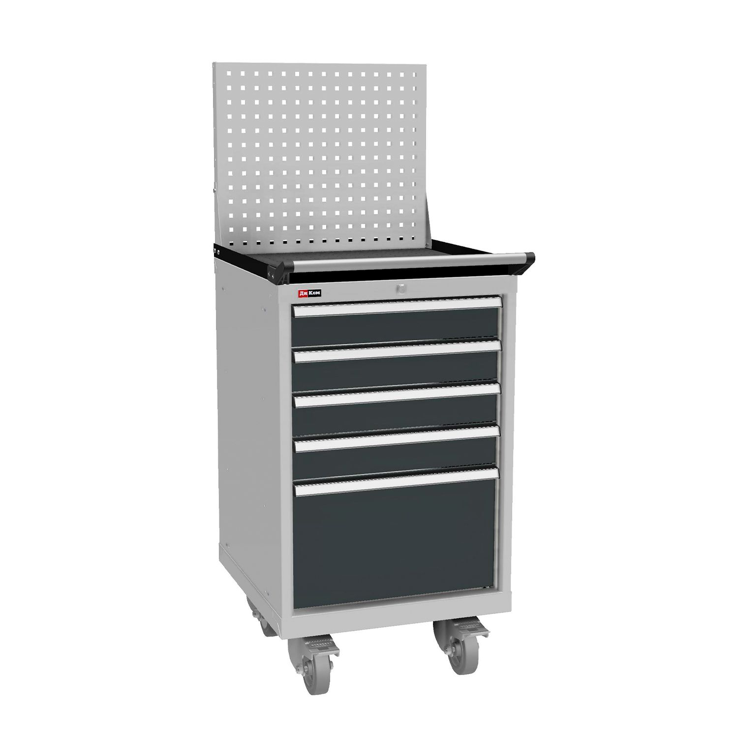 Тумбы окрашены эпоксидной порошковой краской, устойчивой к механическим воздействиям и агрессивным жидкостям: корпус и экран – серые RAL 7038; ящики и двери – антрацитовый серый RAL 7016.