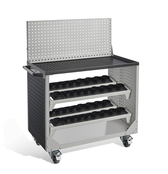 Боковые стенки представляют собой двойные перфорированные экраны. С внешней стороны тележки на них можно установить аксессуары к экранам — лотки, держатели инструмента и т.д. Между экранами установлена ВС полка. Максимальная нагрузка на полку — 200 кг.