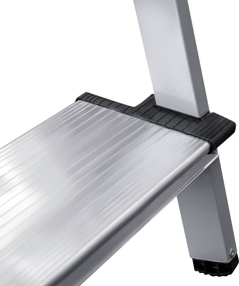 - Закруглённые безопасные края ступеней и площадки смягчают контакт с голенью, предотвращают травмы.