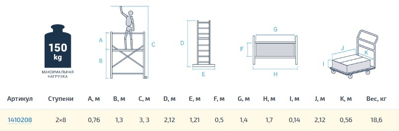Дополнительный комплект к вышке-туре 1410 для увеличения рабочей высоты до 5 метров
