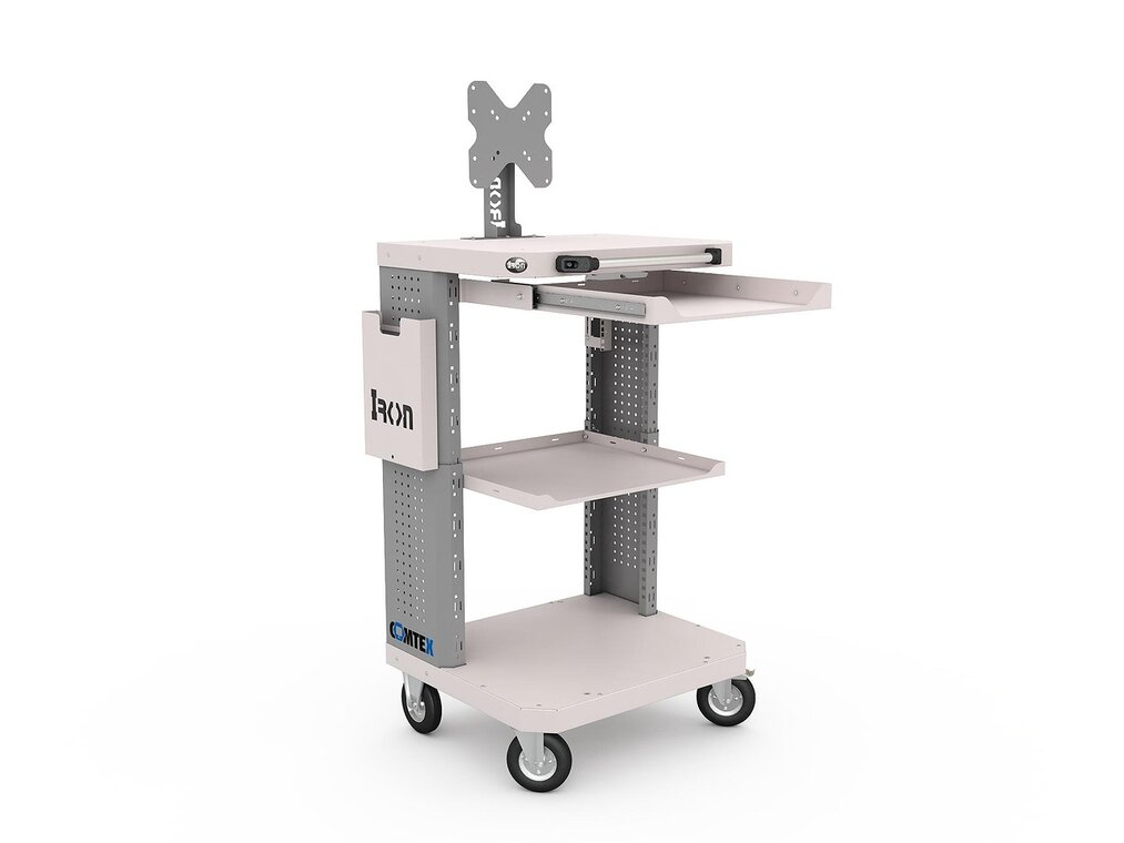 Стойки тележки имеют перфорацию для крепления различных держателей и крючков, а также фиксации кабелей при помощи хомутов.