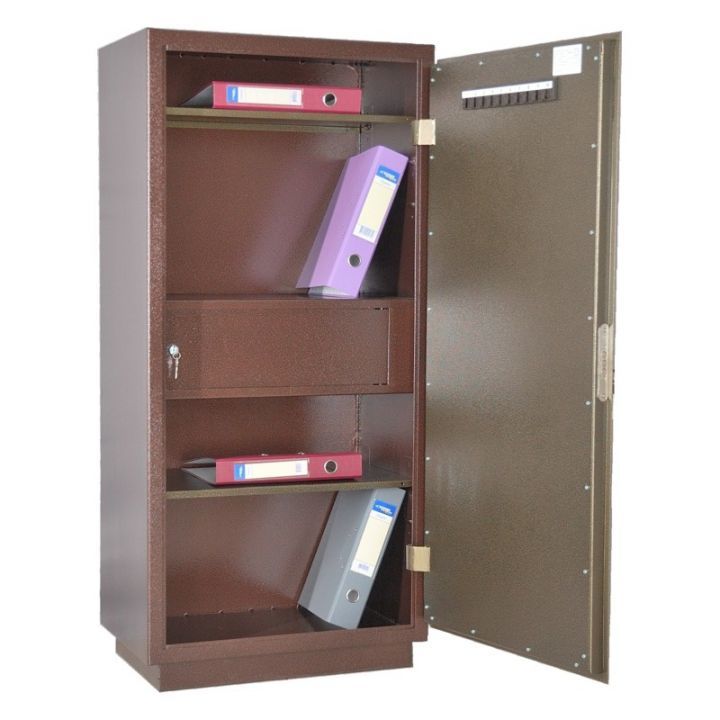 Сейф односекционный, оснащен двумя съемными полками и Трейзером. В двери установлен ключевой 8-ми сувальдный замок ЗАО «Про-Сам» г. Рязань или аналогичный замок другого производителя.