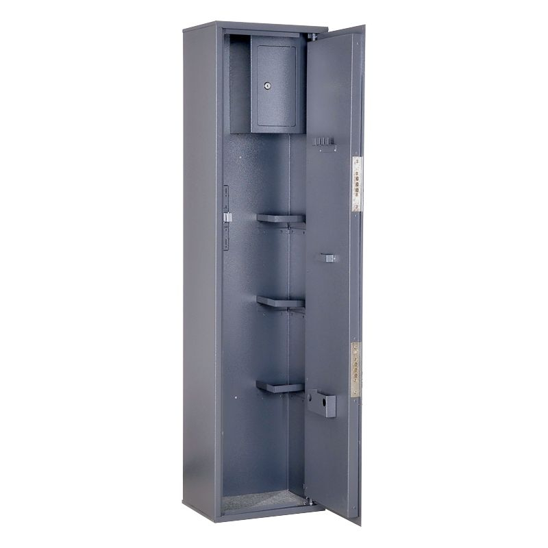 Шкаф оружейный «Меткон» Стрелец-2 на 2 ствола оснащен 3-мя съёмными полками и отделением под патроны.