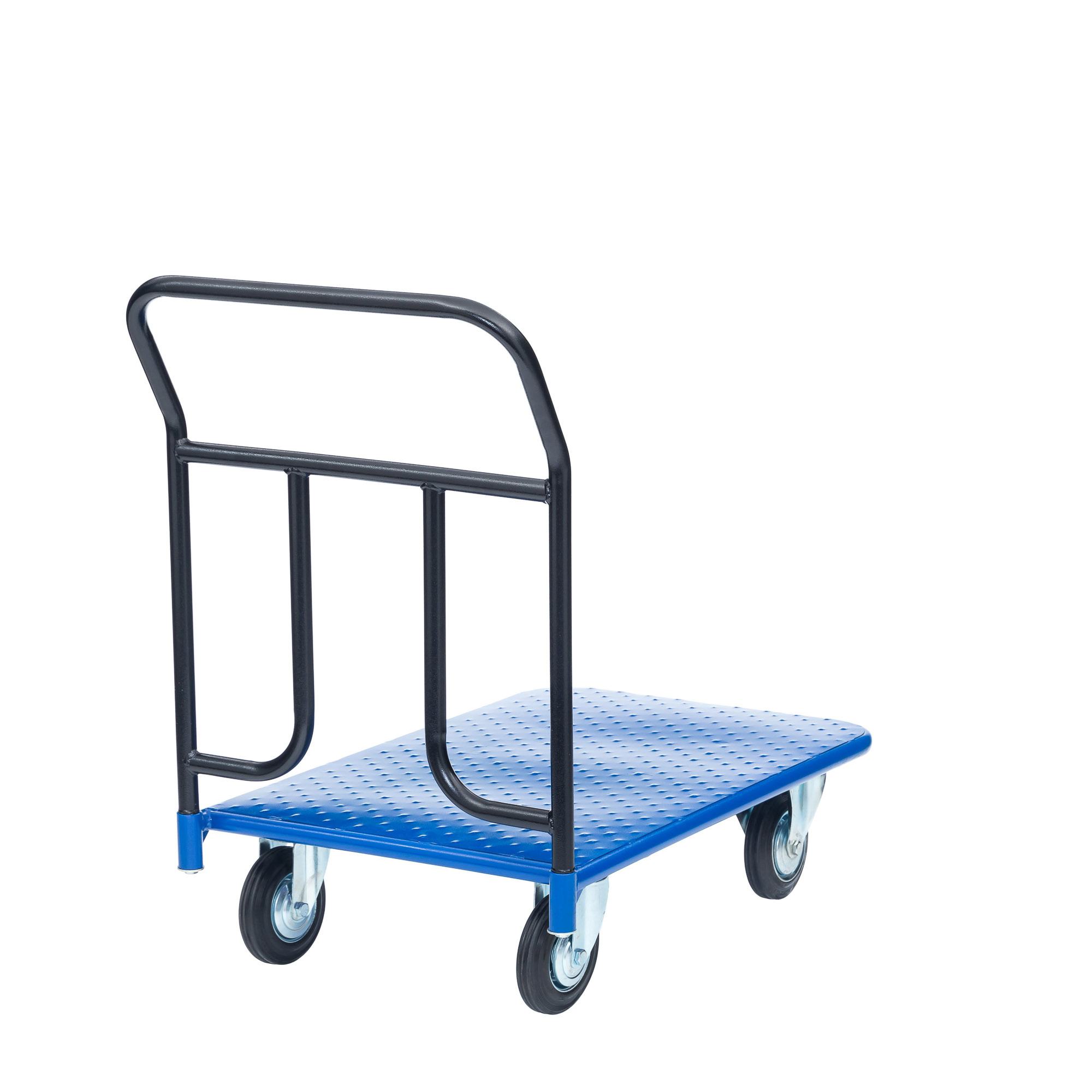 Платформенная 4-х колесная тележка КП-300 (600х900) используется для перемещения различных грузов в складских помещениях. Ручка крепится к платформе болтами, для компактного хранения можно снять, высота ручки 750мм. Платформа имеет уникальную рельефную, полимерную, противоскользящую поверхность. Цвет синий, шагрень. Для легкого перемещения тележка КП-300 комплектуется 2 поворотными и 2 неповоротными колесами, изготовленными из высококачественной литой резины.