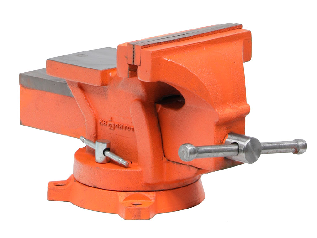 Слесарные тиски ТС-125 поворотные с наковальней. Тиски предназначены для стационарной установки, поворотный механизм позволяет подобрать нужный угол установки детали для обработки. Не требуют специального обслуживания.