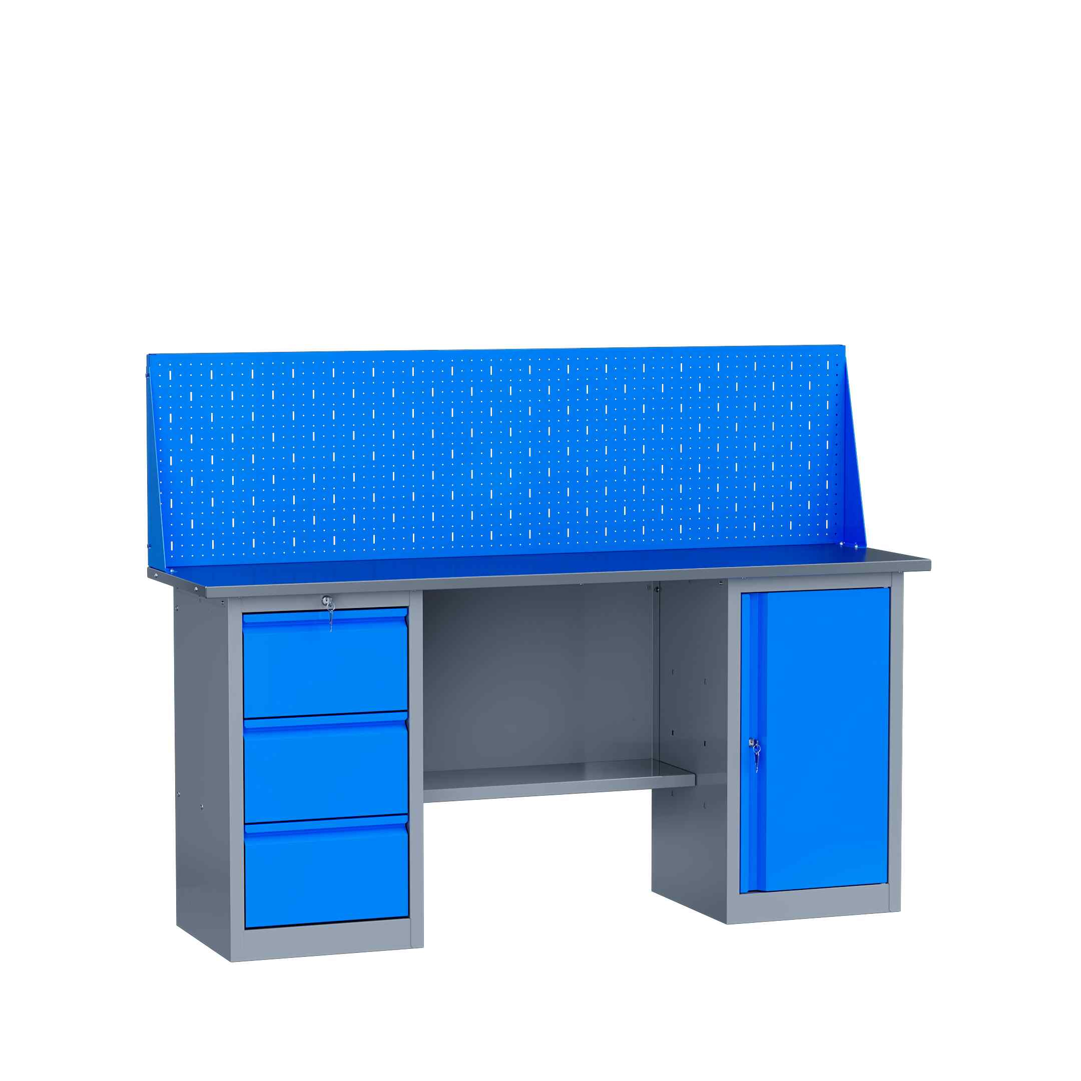 Верстак SLF 181.37-1 – незаменимое оборудование для работы слесарей, плотников, механиков в автосервисах, мастерских, промышленных цехах и т.д. Модель относится к бюджетной серии, поэтому ее максимальная нагрузка – средняя и составляет 300 кг, а стоимость выгодно отличается от аналогичных моделей.