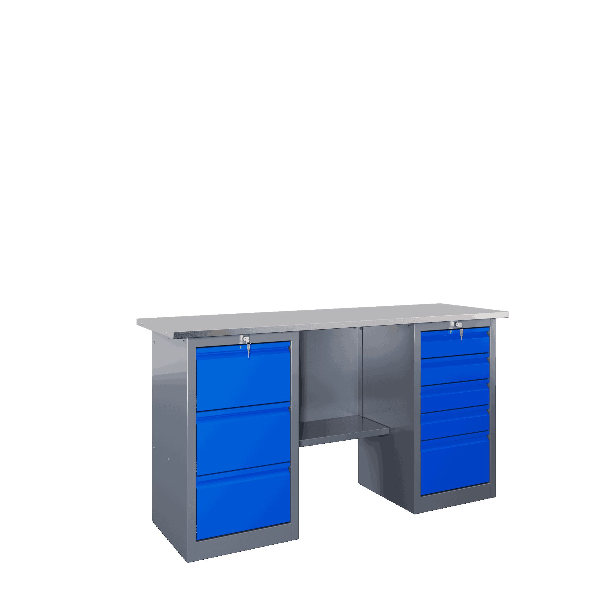Самые компактные верстаки с глубиной столешницы 500 мм. Благодаря небольшой глубине, такие верстаки легко размещаются в ограниченных пространствах, например, в гаражах, мастерских и тд. Несмотря на компактные размеры, верстаки могут быть оснащены полками, ящиками и держателями для инструментов, что помогает поддерживать порядок и быстро находить нужные предметы.