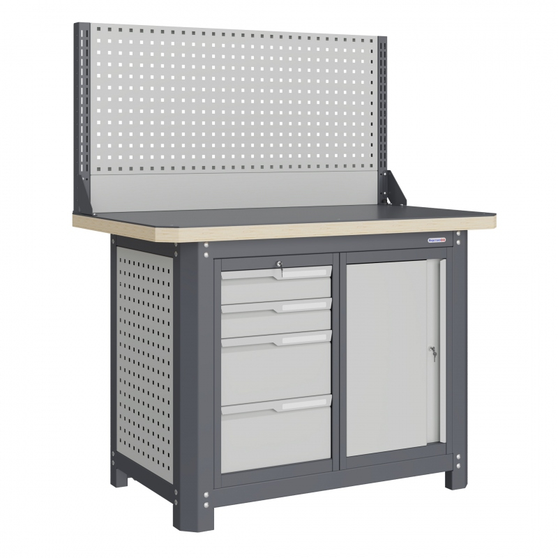 Верстак серии MECHANIC: MCN 1252.S47-1 состоит из столешницы шириной 1193 мм, рамы верстака, состоящей из опор, перемычек, боковых перфопанелей, малого модуля S4, малого модуля S7, одинарного экрана с кронштейнами.