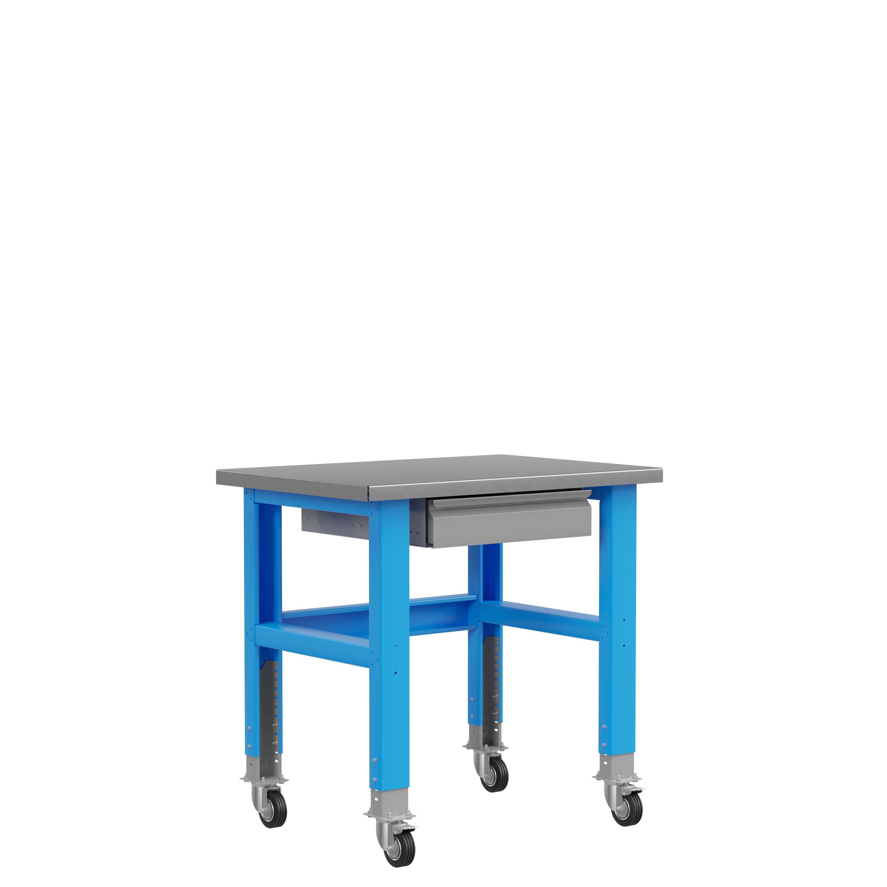 Конструкция опор позволяет производить регулировку по высоте от 800 до 1000 мм, что позволяет использовать подкатные инструментальные тележки «Верстакофф» серии 795.