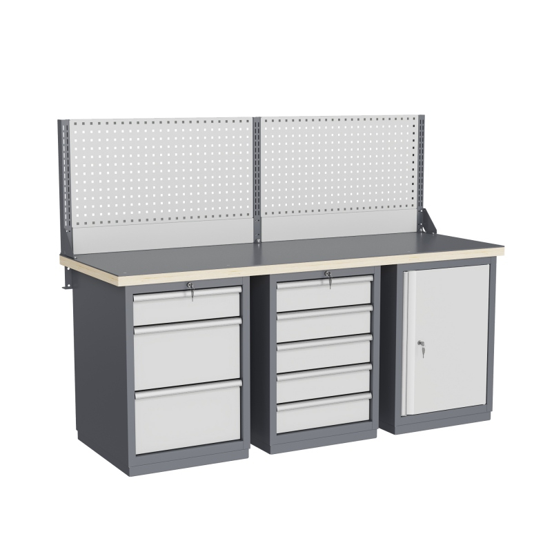 - широкий выбор различных тумб позволяет получить более 50 различных вариантов верстаков и рабочих столов под любые задачи;